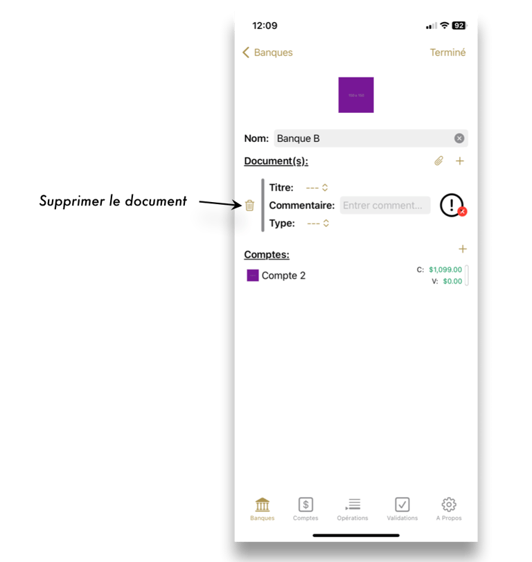 Ajouter un document PDF ou texte à une banque, un compte, une opération...