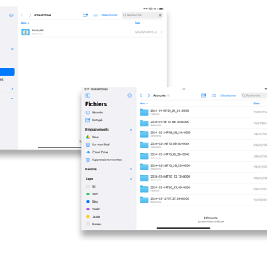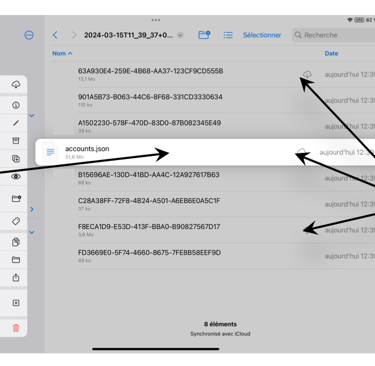 Un répertoire 'Accounts' est créé dans iCloud et un sous répertoire au format 'AAAA-MM-JJTHH_MM_SS+0000" est créé pour y stocker les documents exporté.