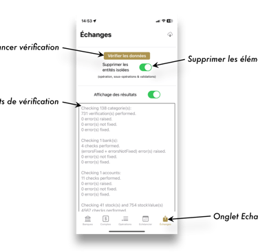 NB: La vérification s'efforce de ne pas supprimer de données mais il est recommander de faire un export complet avant de lancer une vérification, nottamment lorsque la suppression des entités isolée est sélectionnée.