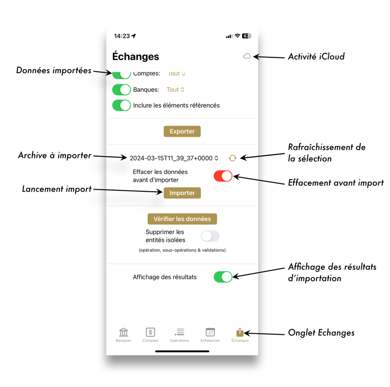 Indiquer avec l'interrupteur si vous souhaitez effacer les données avant l'importation