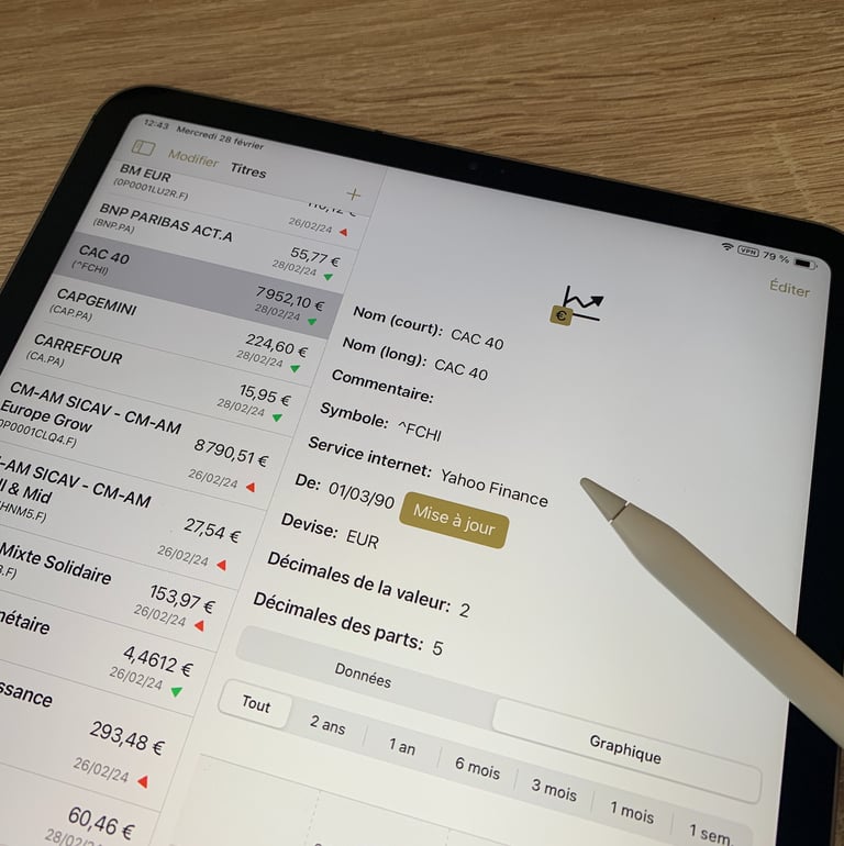 Add a stock, a fund, an index and update its value (manually or through internet service)